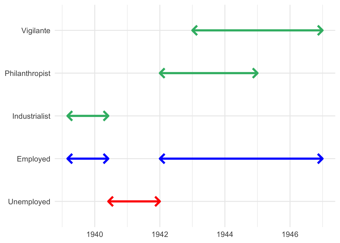 Suffice it to say, we’ve firmly left the warm embrace of {lubridate}’s intuitive API. To answer our boss’s second question, when was Bruce unemployed between jobs, we perform another slightly less confusing dance.